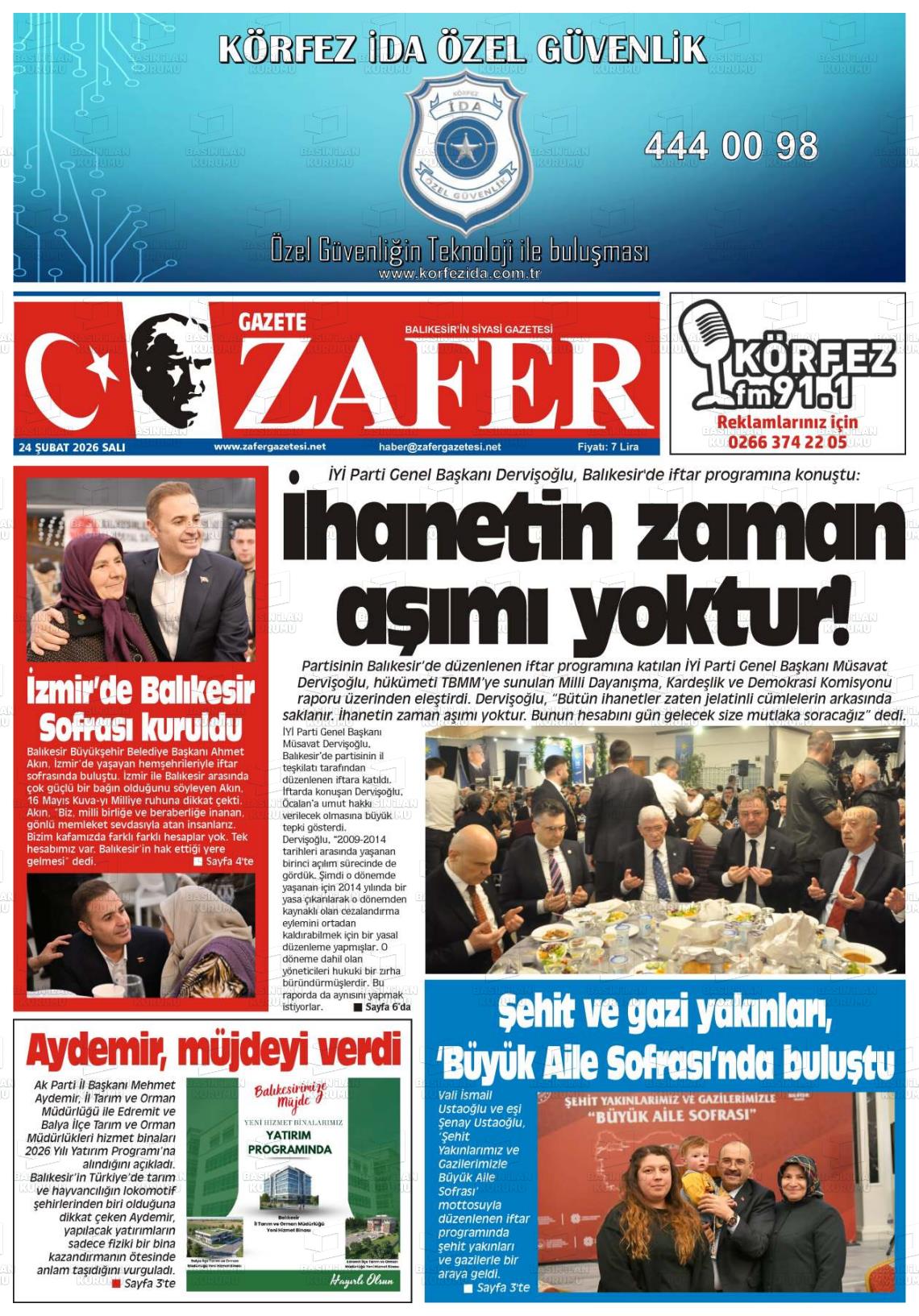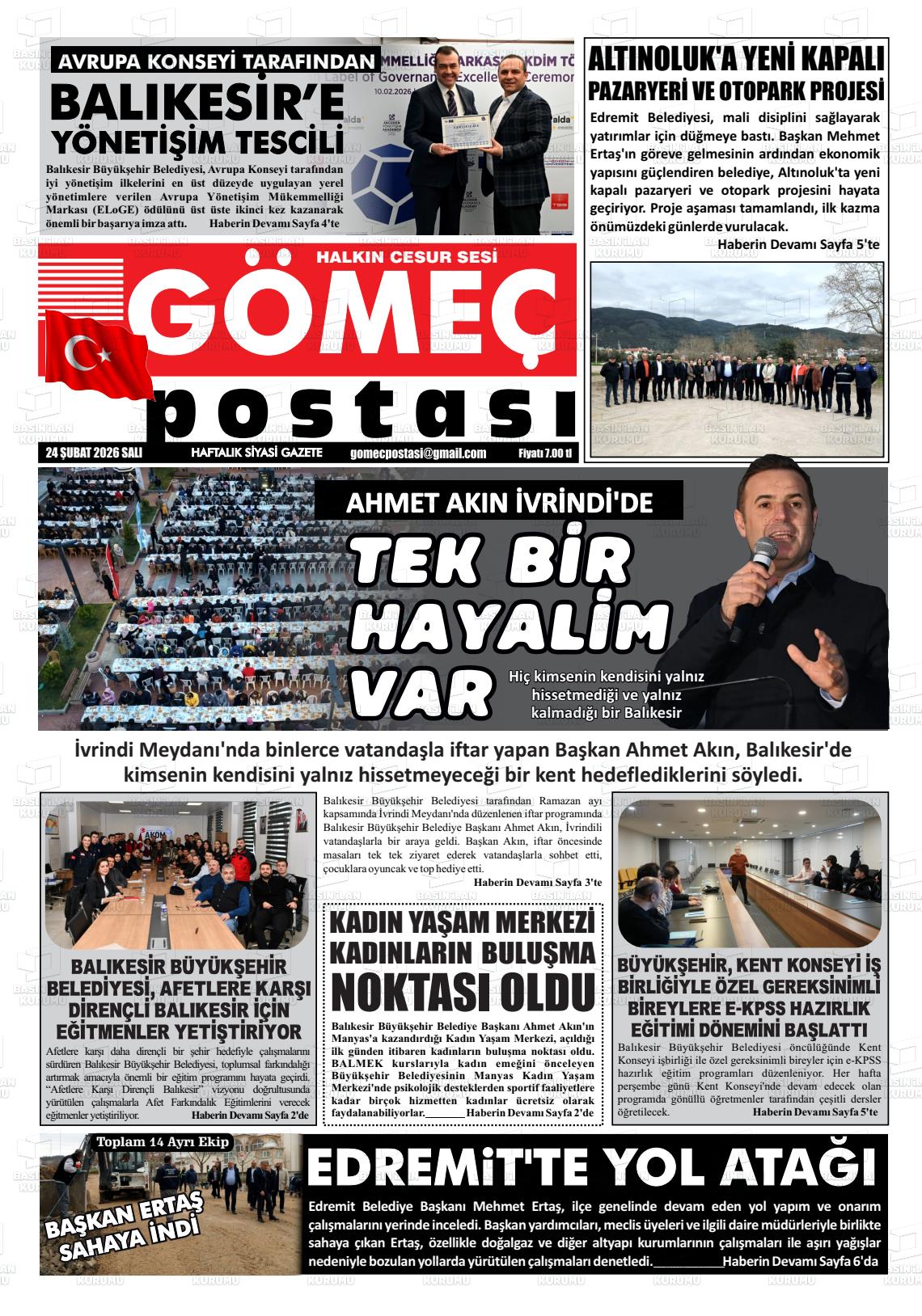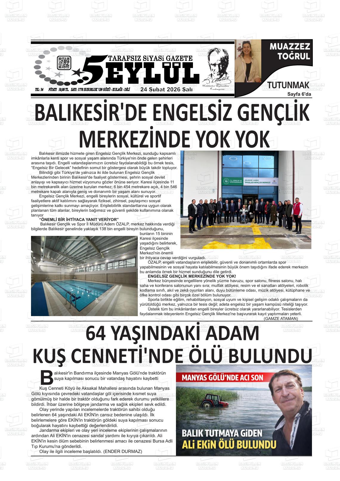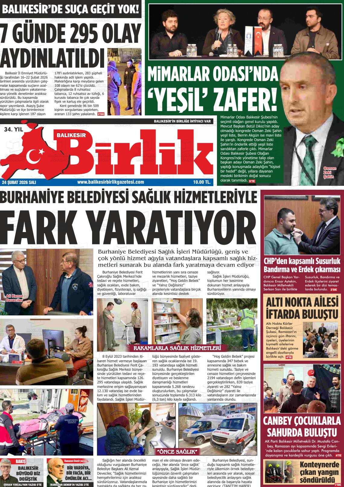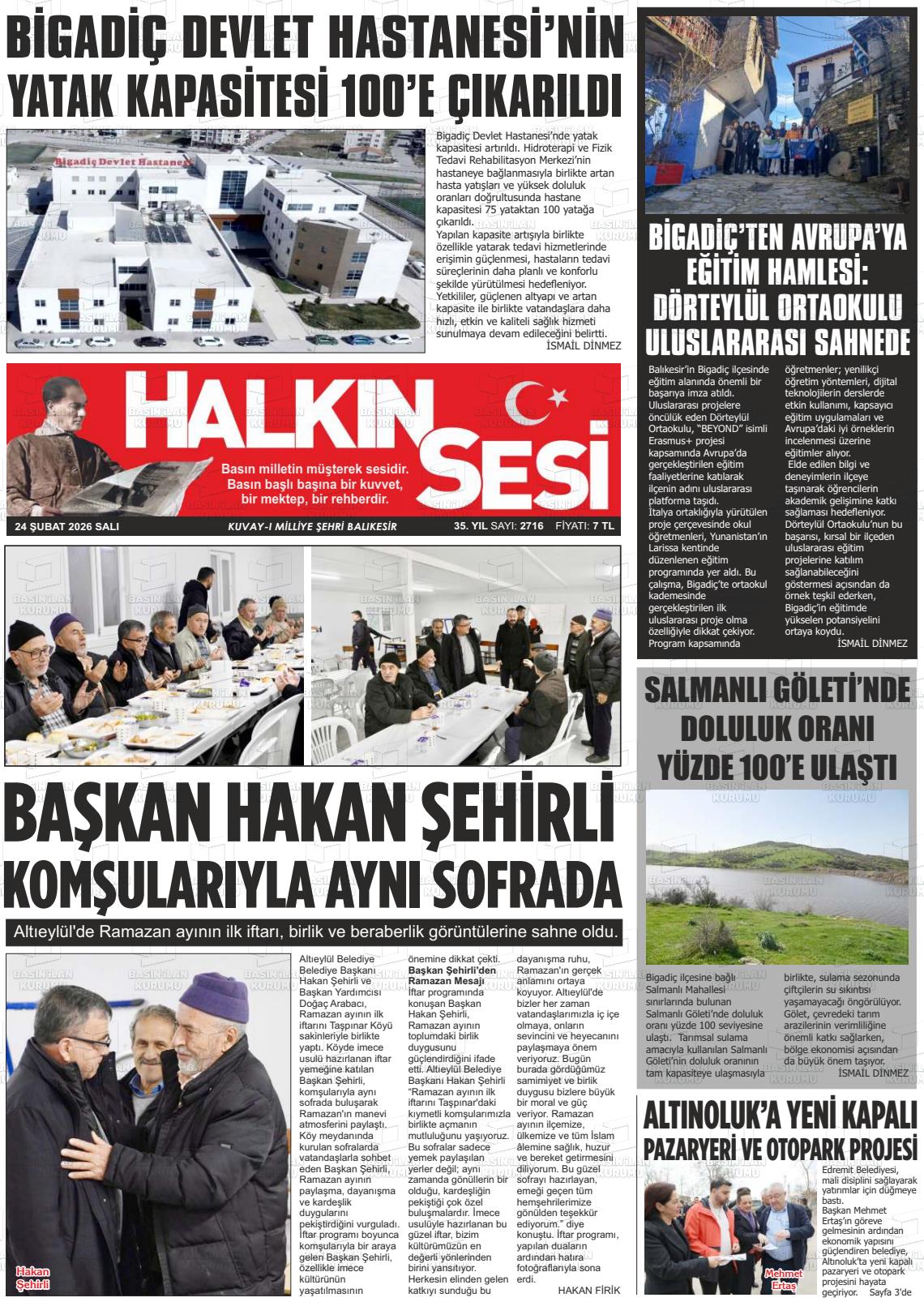 Balıkesİr Yerel Gazeteleri 24 Şubat 2026, Salı Günü Manşeti
