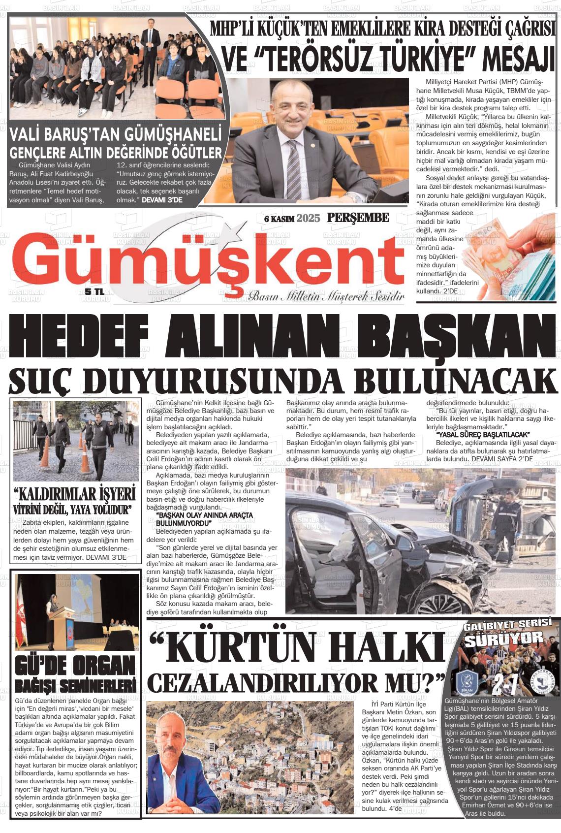 Gümüşhane Yerel Gazeteleri 24 Şubat 2026, Salı Günü Manşeti