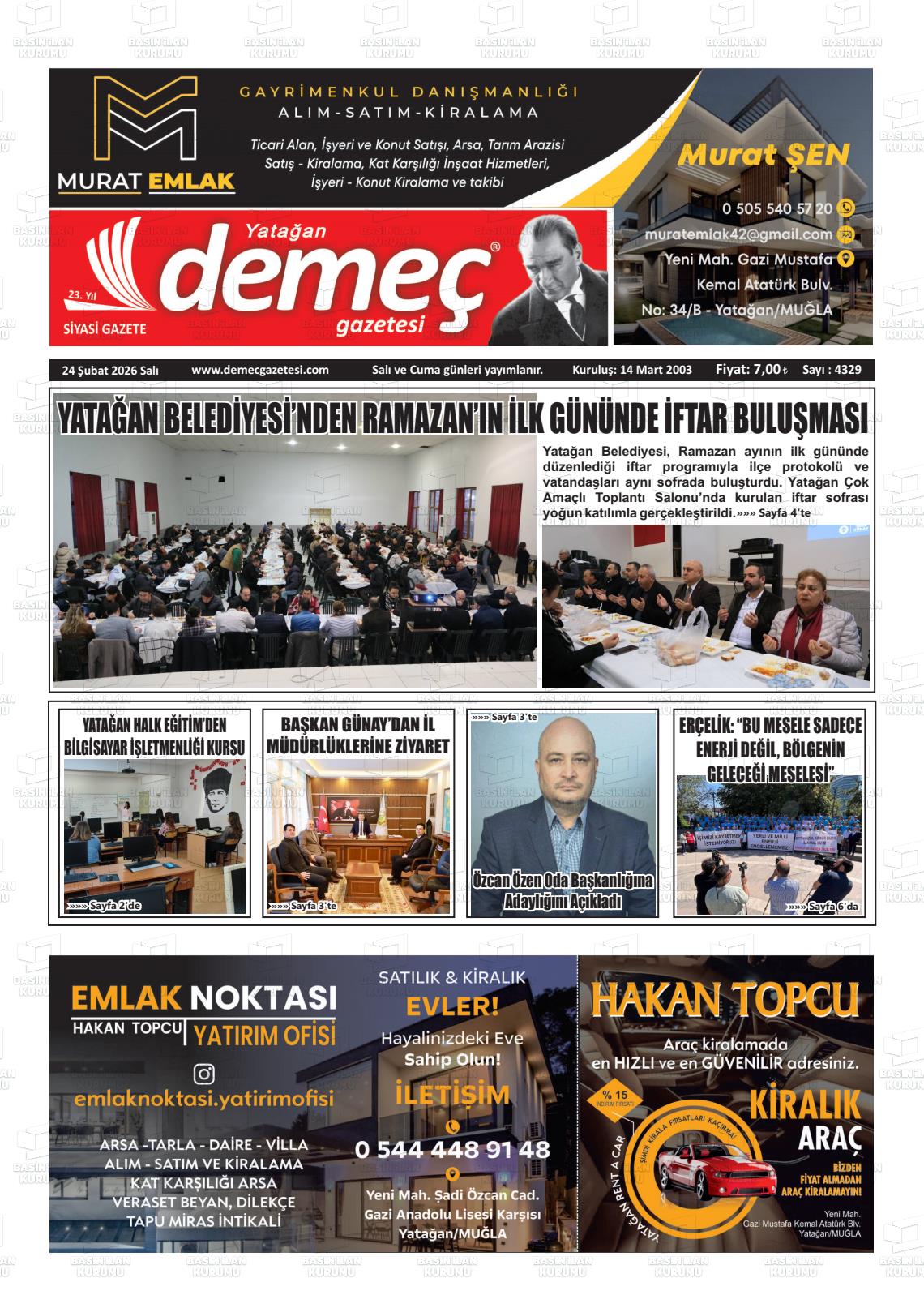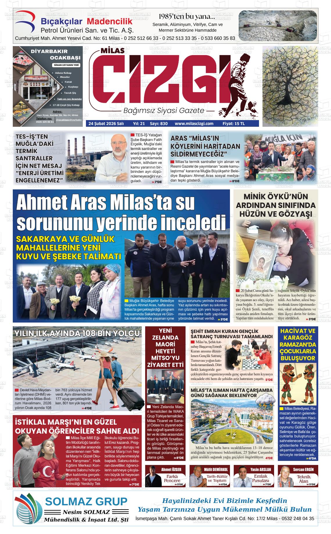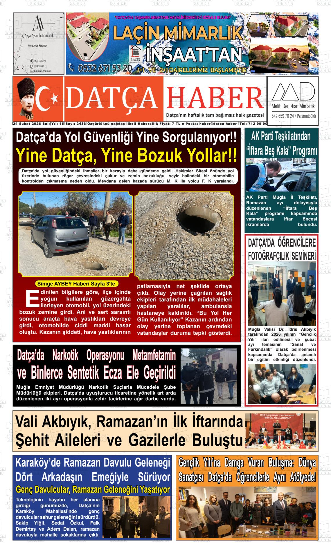 Muğla Yerel Gazeteleri 24 Şubat 2026, Salı Günü Manşeti